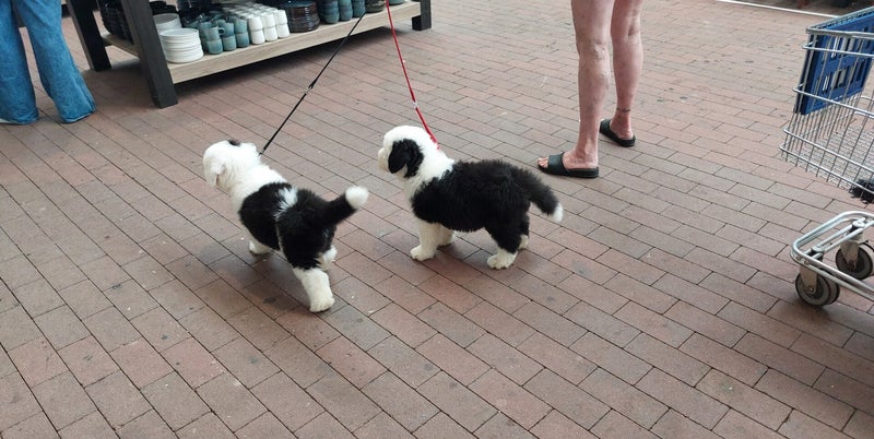 We zijn naar de DIO drogisterij gegaan. De eigenaresse was altijd heel geïnteresseerd in onze honden, dus gingen we met de pups naar haar winkel toe om ze te laten zien. Ze was op slag verliefd op Boaz en Balou. Ze vond het zo leuk en lief dat we even aan kwamen.