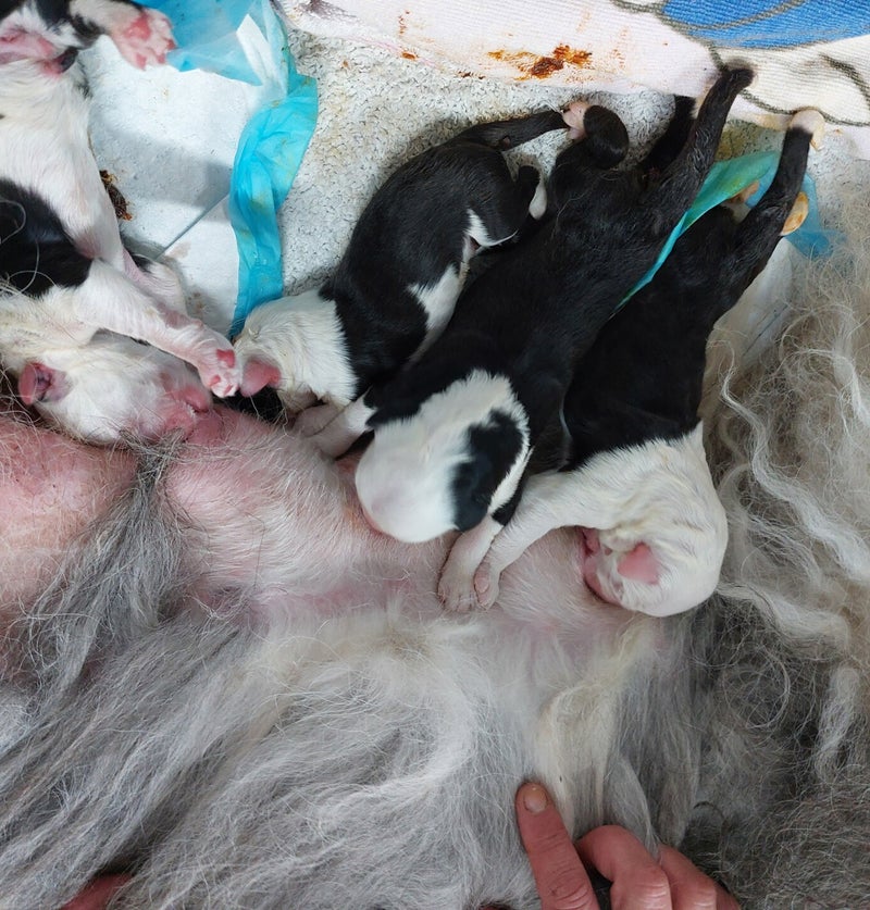 Ze heeft mooie pups gekregen geen wit in zwart. Ze mag zichzelf een trotse mama vinden.