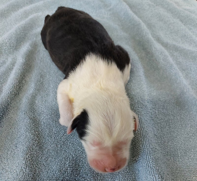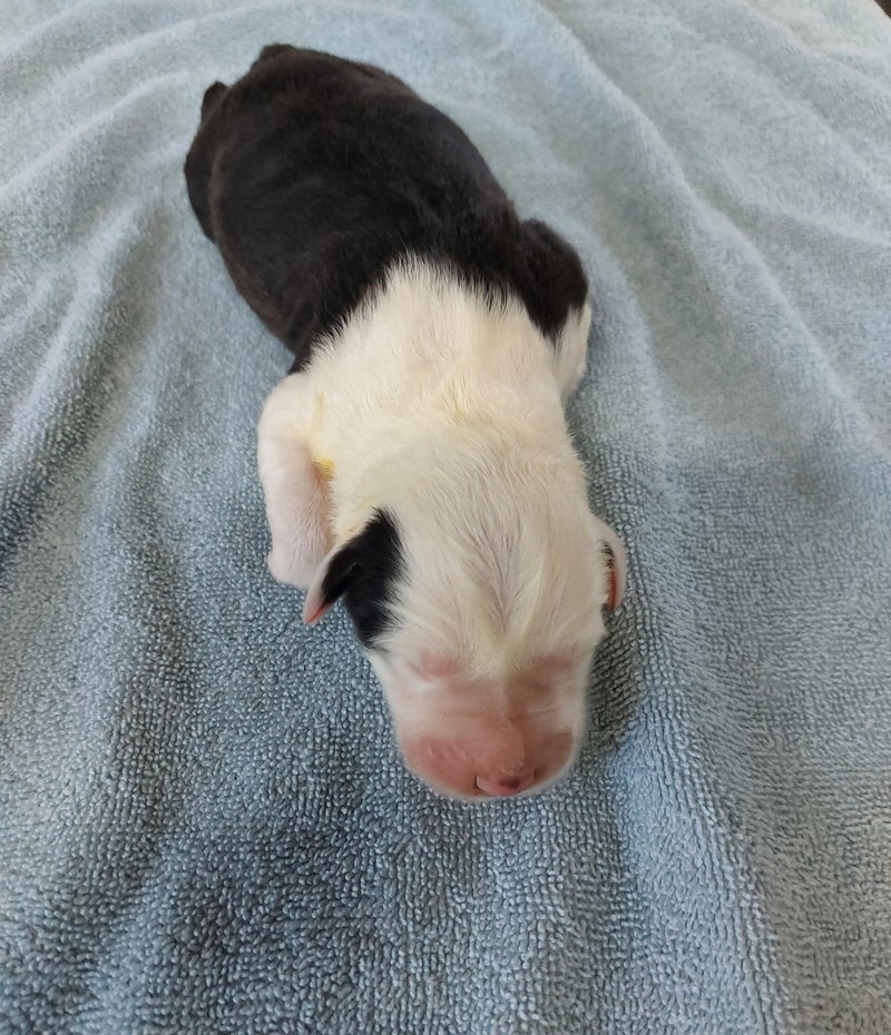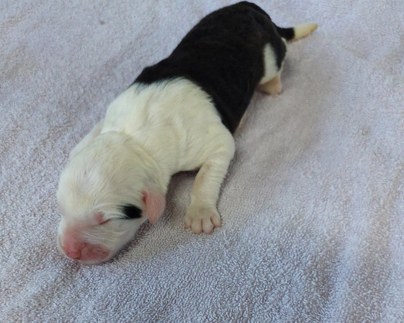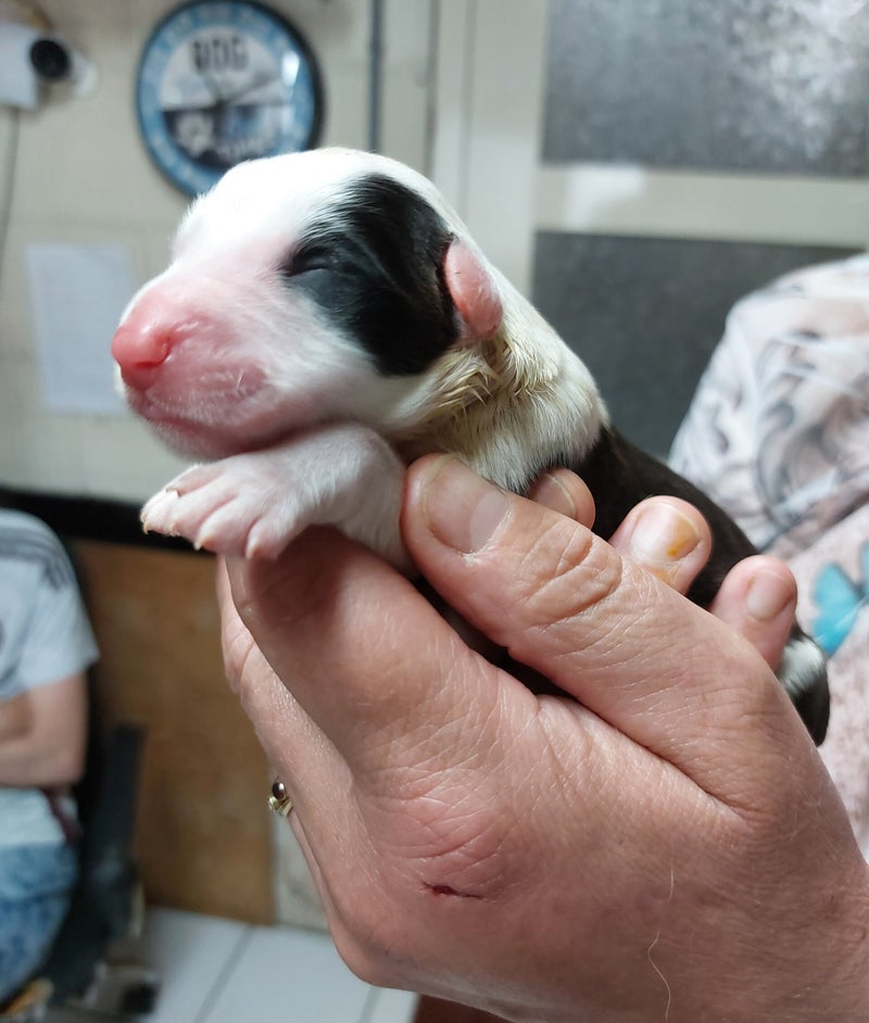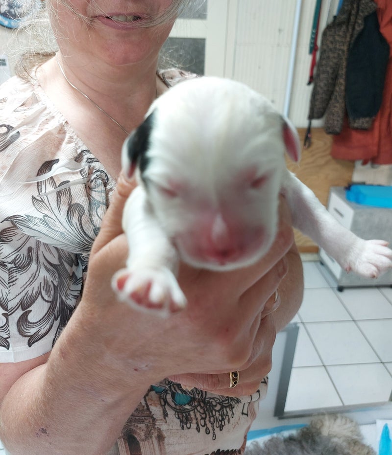 Ollie was het 3e pupje dat was geboren. Hij was niet de zwaarste reu, maar dat heeft hij ruimschoots ingehaald. Toen hij zondag wegging was hij de zwaarste.