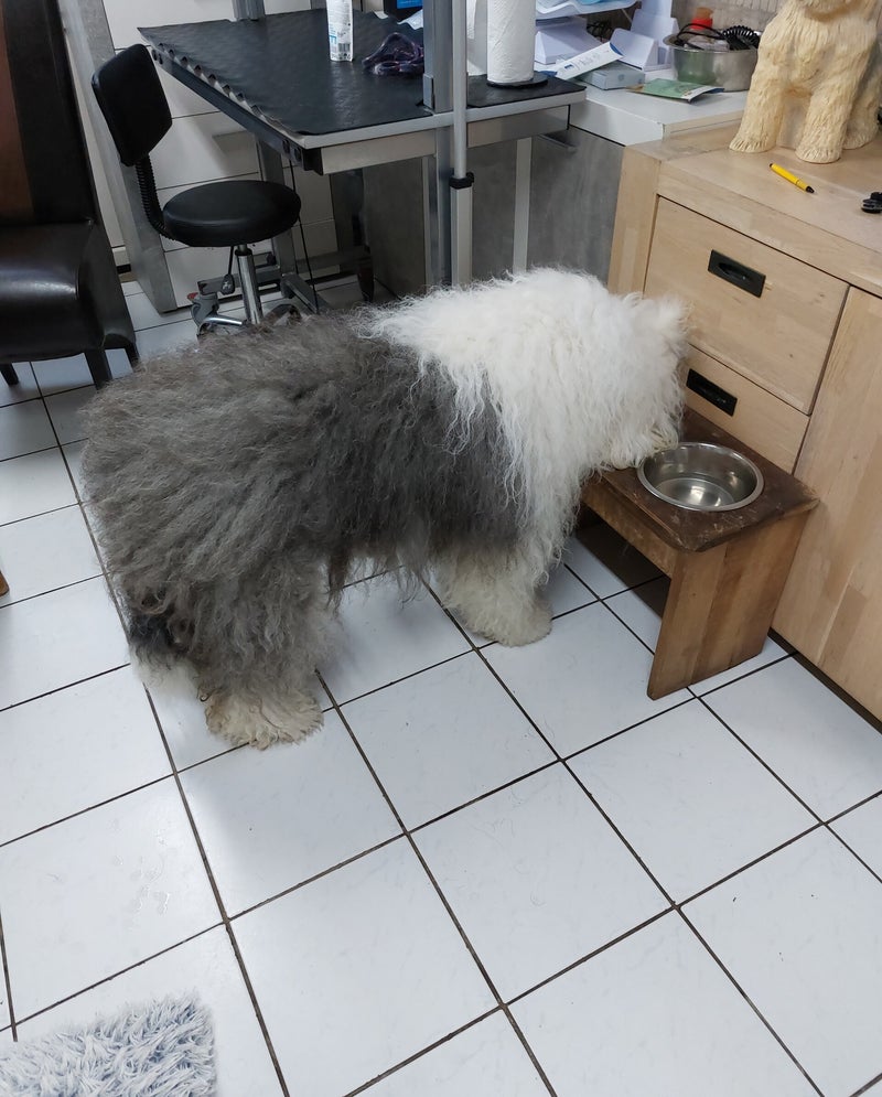 Na het wassen werd hij geföhnd en geborsteld. Allemaal spannende dingen. Er moest ook nog tussen de voetkussentjes geknipt worden. Ik heb toen een kauw bot gepakt en daar was hij heerlijk mee bezig, waardoor ik de voetjes aan de achterkant goed kon knippen. De voetjes aan de voorkant was wat lastiger, maar hij ziet er weer knap uit en hij is zo lief.