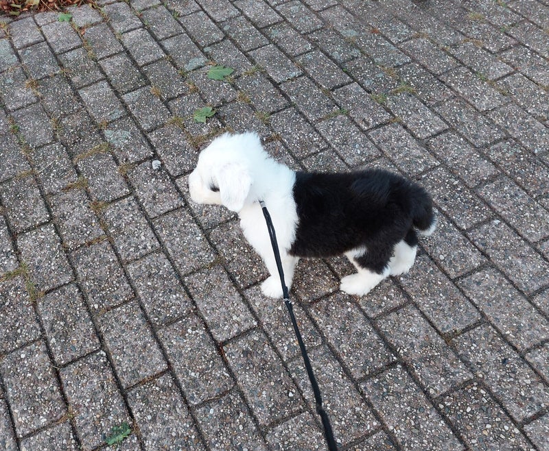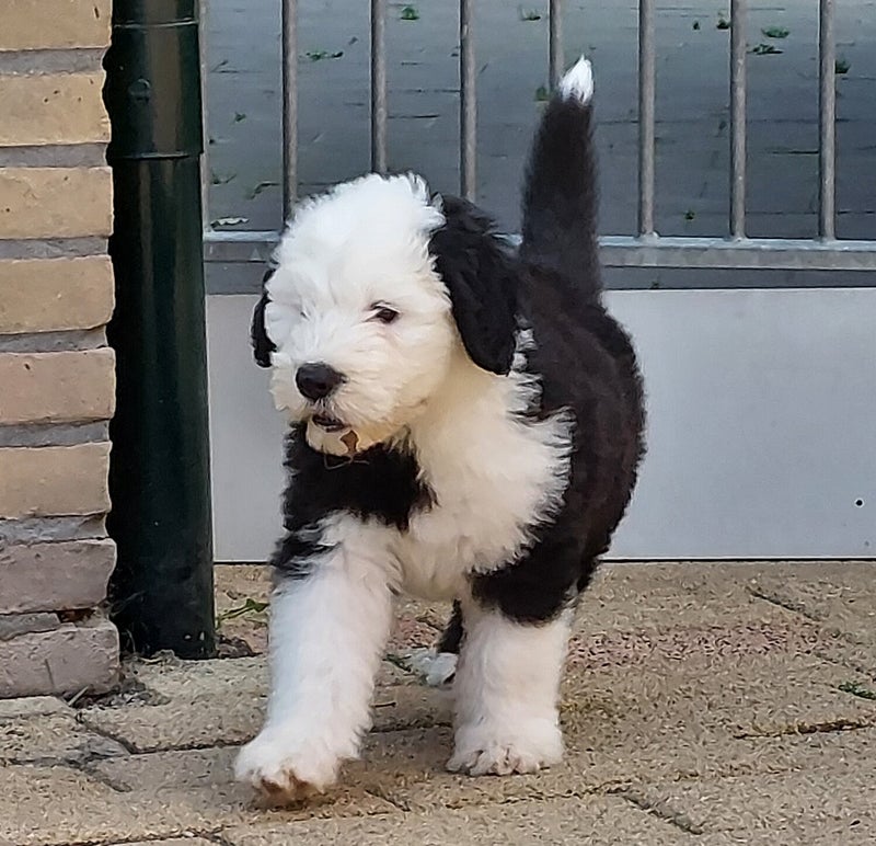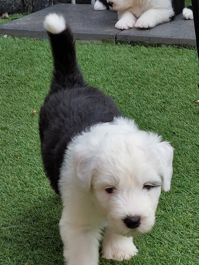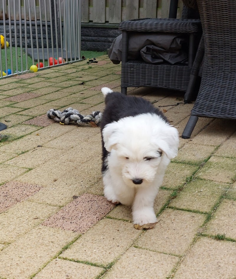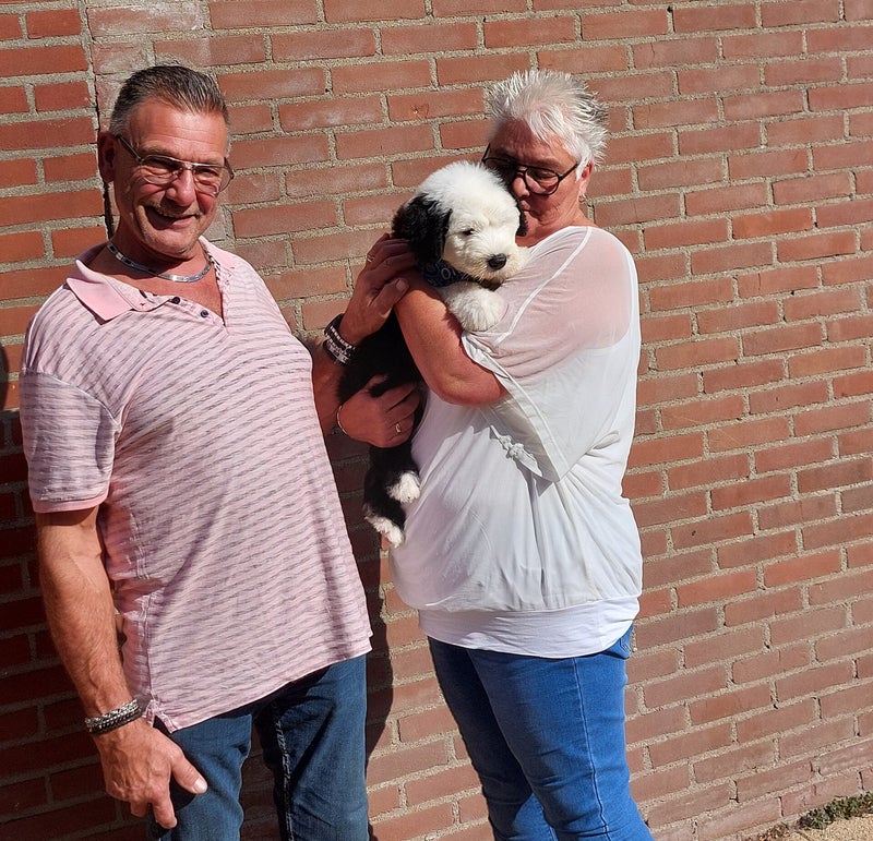 Goed Wobbel gaat naar mensen die vroeger veel bobtails had en er ook mee geshowd heeft. Ze heeft tussendoor andere honden gehad en nog, maar haar hart ligt toch bij de bobtails.