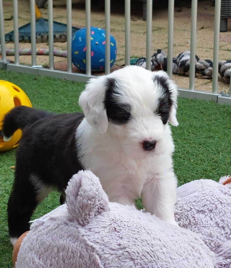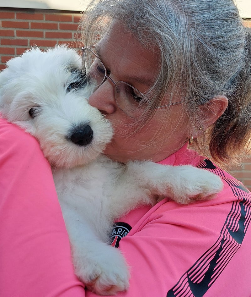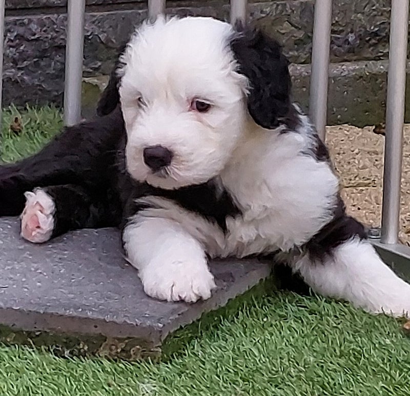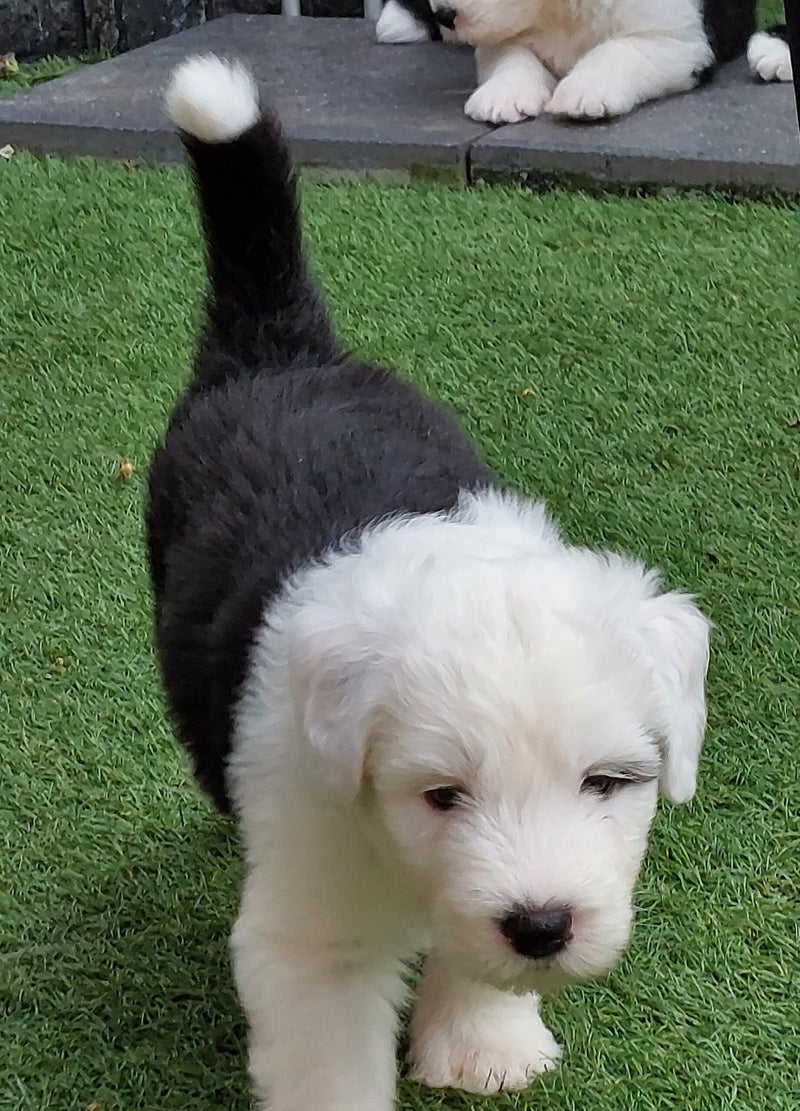 Goed Wobbel gaat naar mensen die vroeger veel bobtails had en er ook mee geshowd heeft. Ze heeft tussendoor andere honden gehad en nog, maar haar hart ligt toch bij de bobtails.
