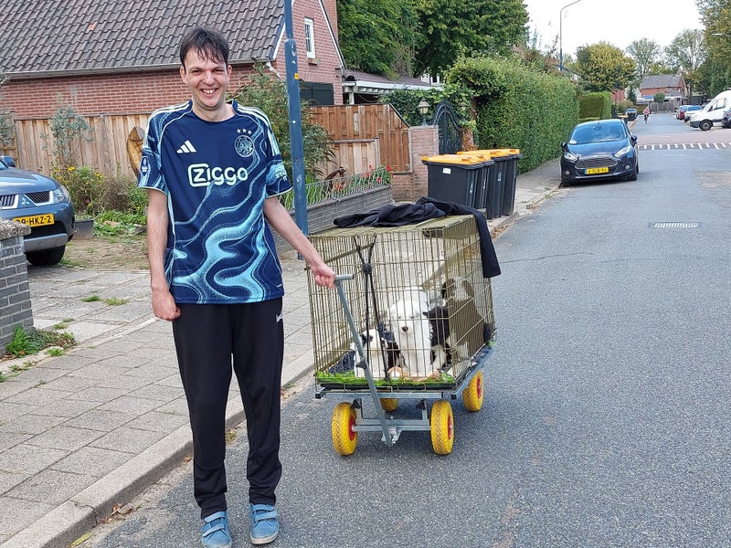 We komen dan vaak ook allerlei mensen, kinderen en honden tegen. Ze vinden het spannend, maar ook wel heel leuk. Ze nemen echt alles in hen op. De vogels die over vliegen, mensen op de fiets of auto's die rijden. Ze vinden de aandacht die ze krijgen van de andere mensen heerlijk.